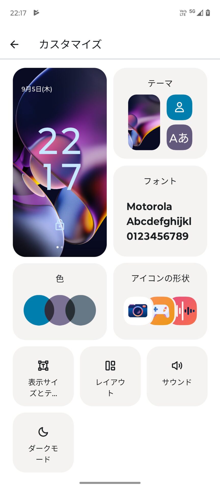 Motorola純正のランチャーアプリは、フォントや配色など、外観のカスタマイズが簡単にできる。
