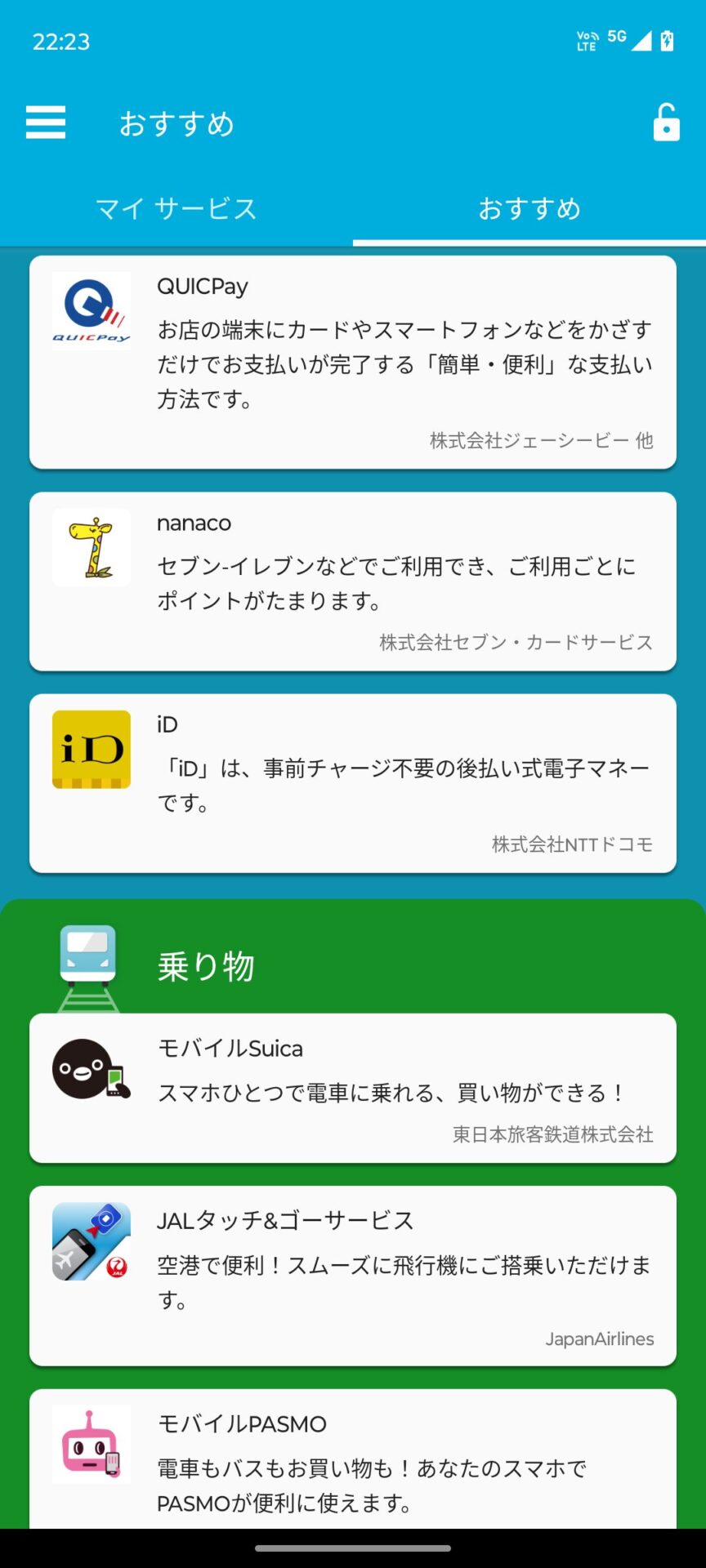 おサイフケータイが使えることから、モバイルSuicaはもちろんのこと、QUICPayやiD、nanacoなどのタッチ決済の電子マネーに幅広く対応している。
