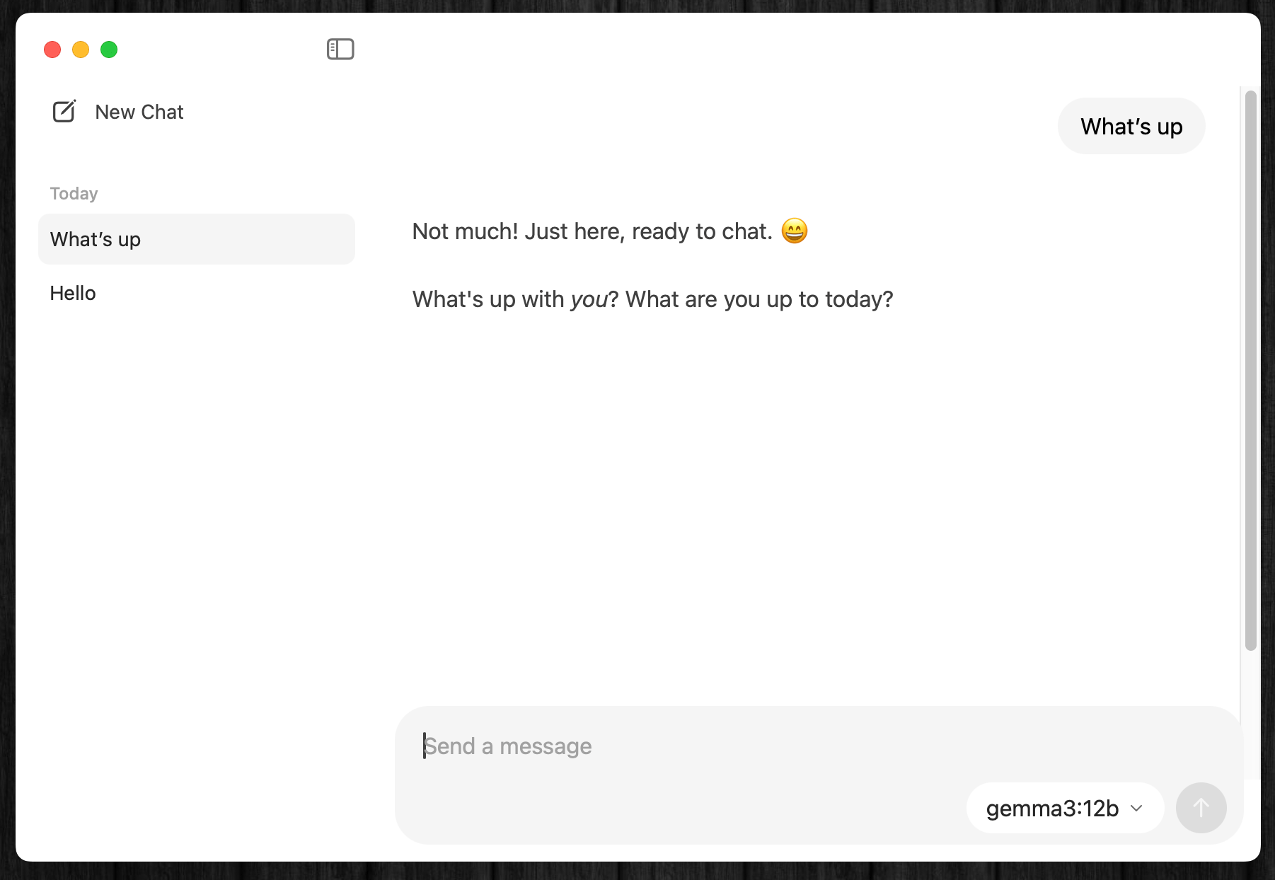 Ollamaアプリ自体が、以下のようにChatGPTのようなAIチャットアプリ風のインターフェースに進化したのだ。