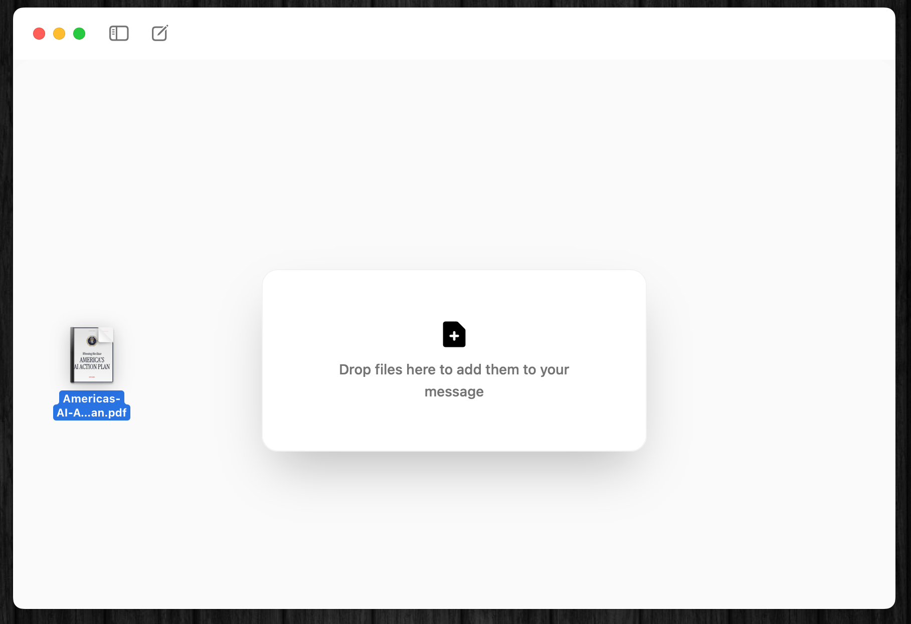 LLMに読ませたいファイルを、チャットウィンドウにドラッグ&ドロップするだけで、会話のコンテキストとしてファイルの中身を利用することができる。