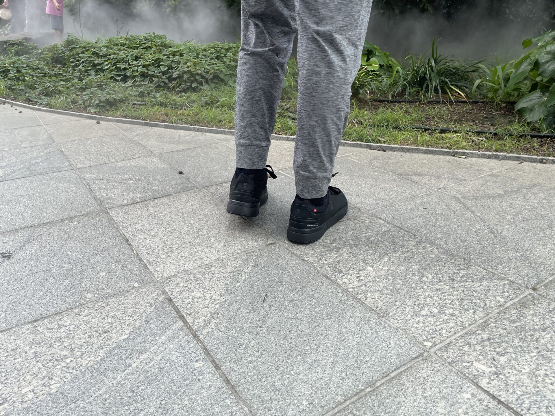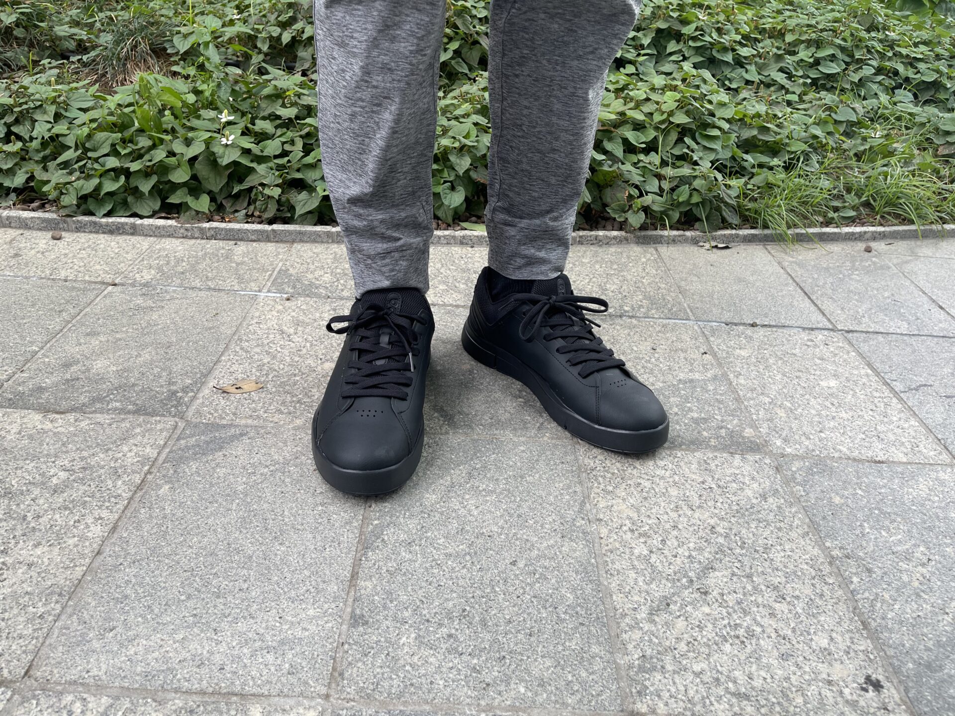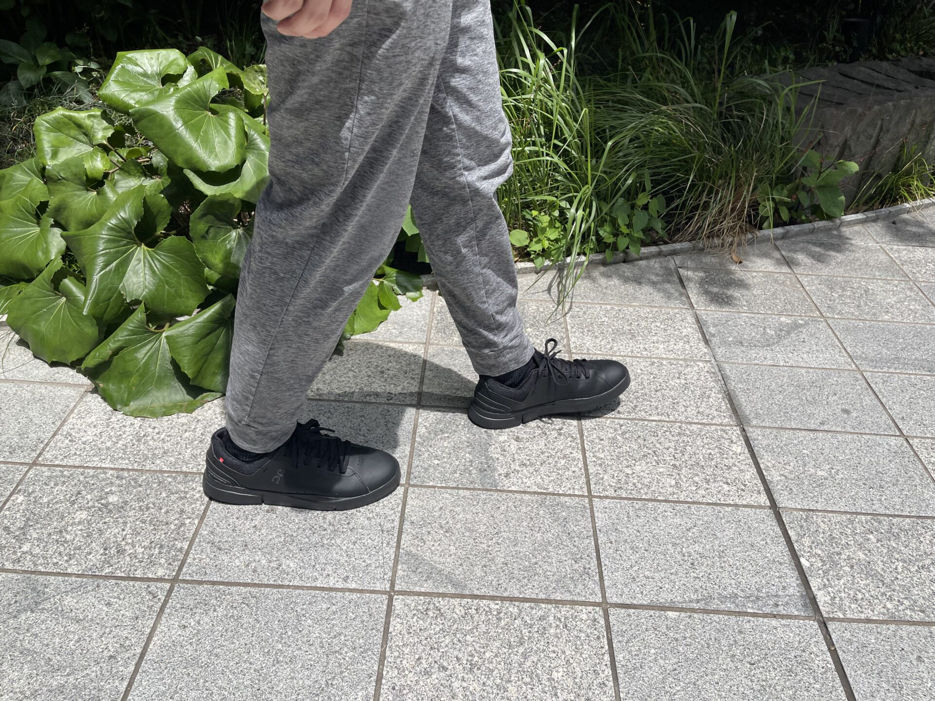 THE ROGER Advantageの場合、割と控えめかつ本体と同じ黒色で「On」のロゴが刻まれており、ニューバランスよりは「スニーカー感」が目立ちにくいように思う。
