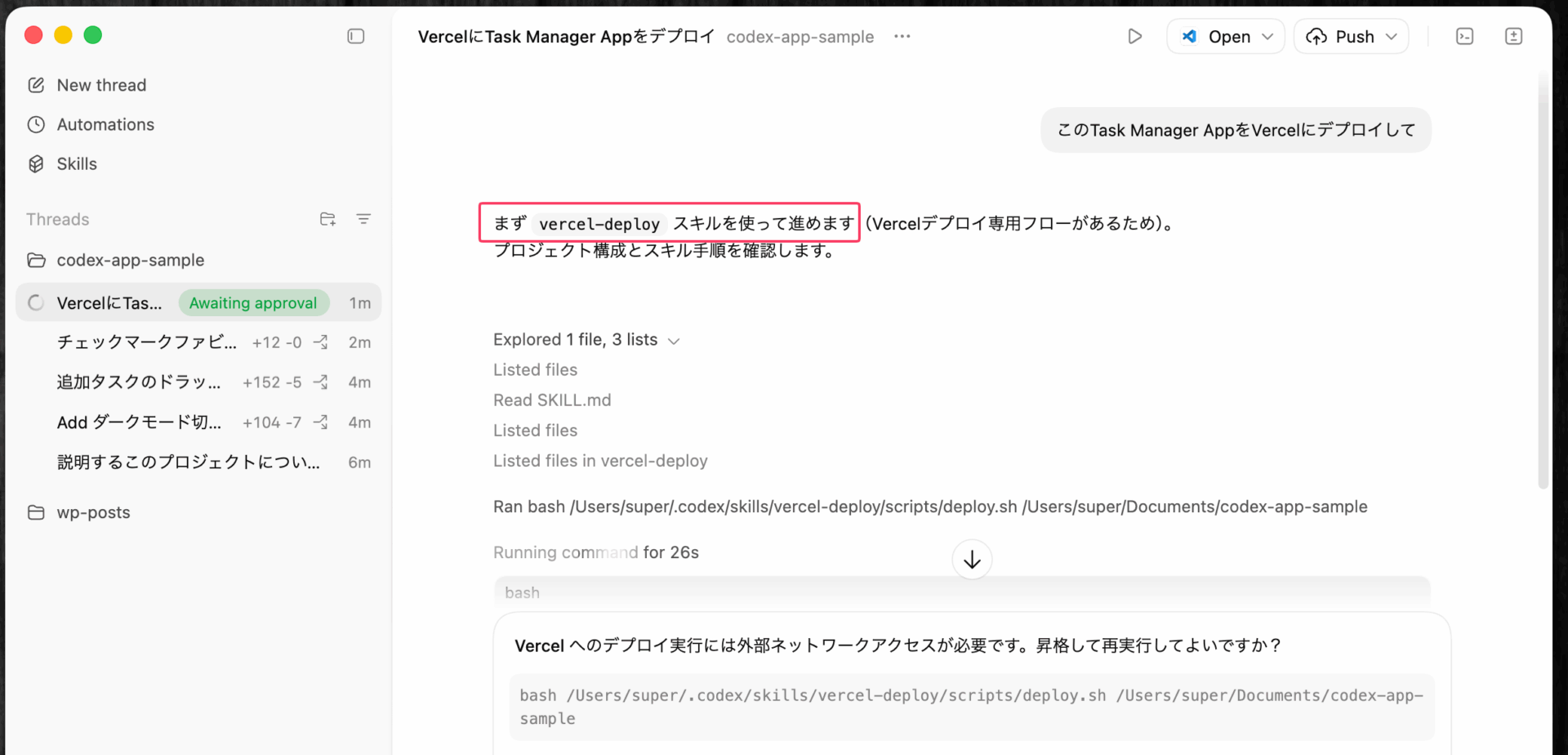 スキルを一度有効にしておけば、どのスキルを呼び出すべきかは、Codexが自動で判断してくれるので便利だ。