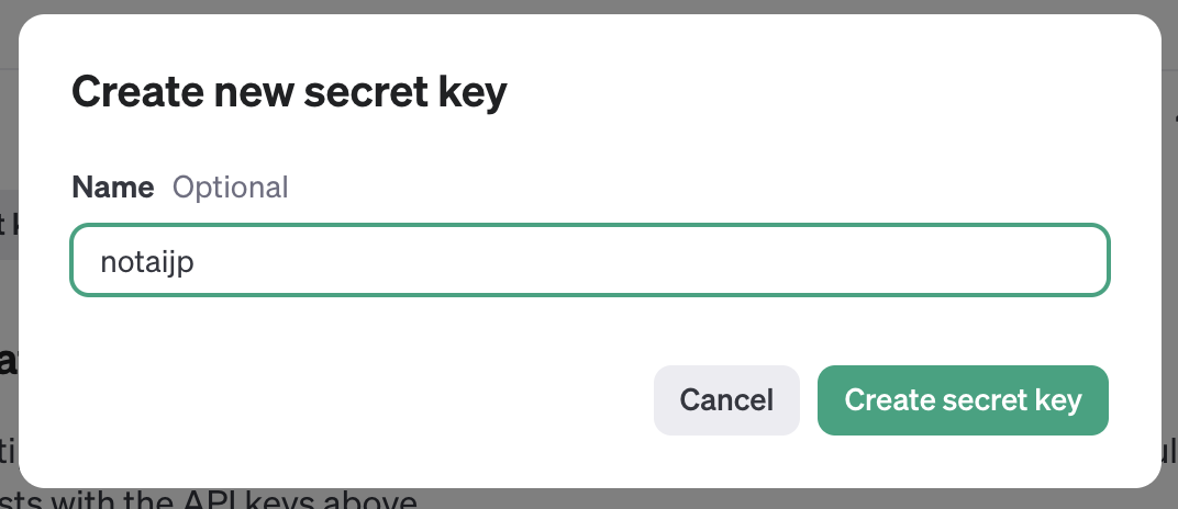 - キー生成を開始: APIキーセクションに移動し、「Create new secret key」をクリックする。