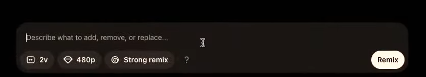 - Remix(リミックス):既存動画にテキストで修正指示し、新たなバリエーションを生成。