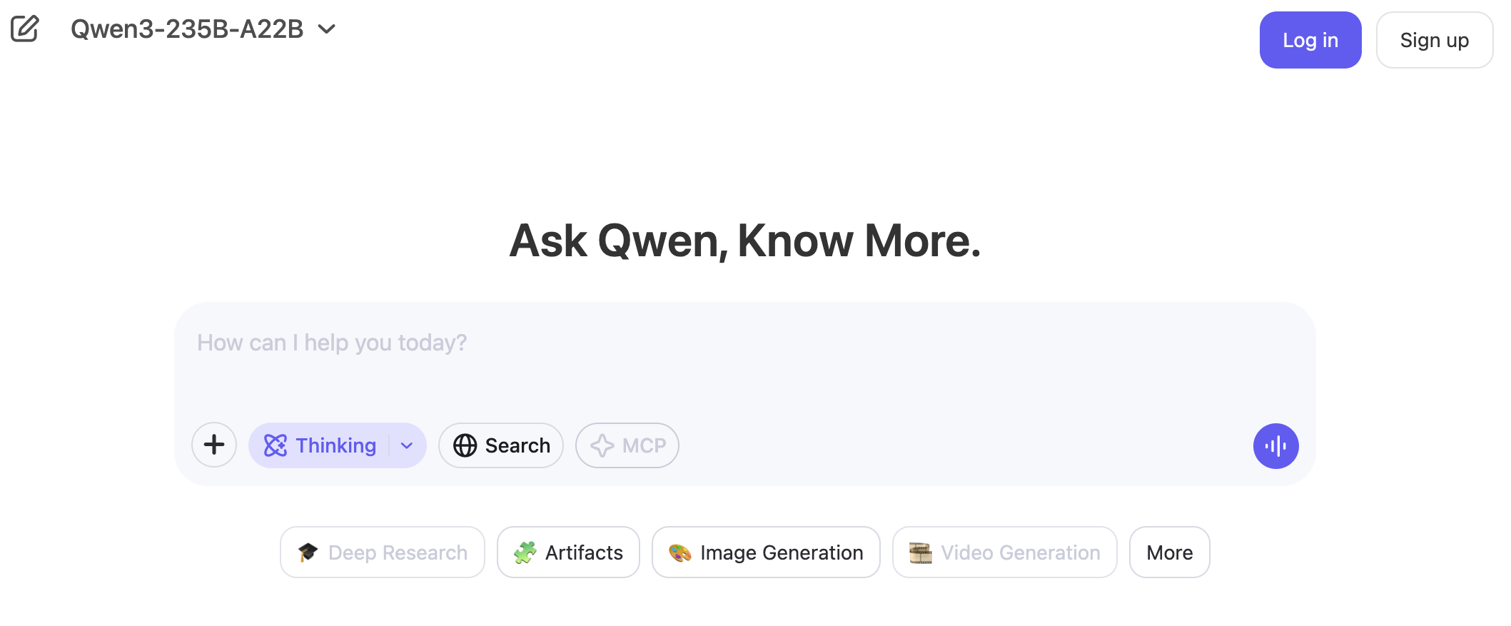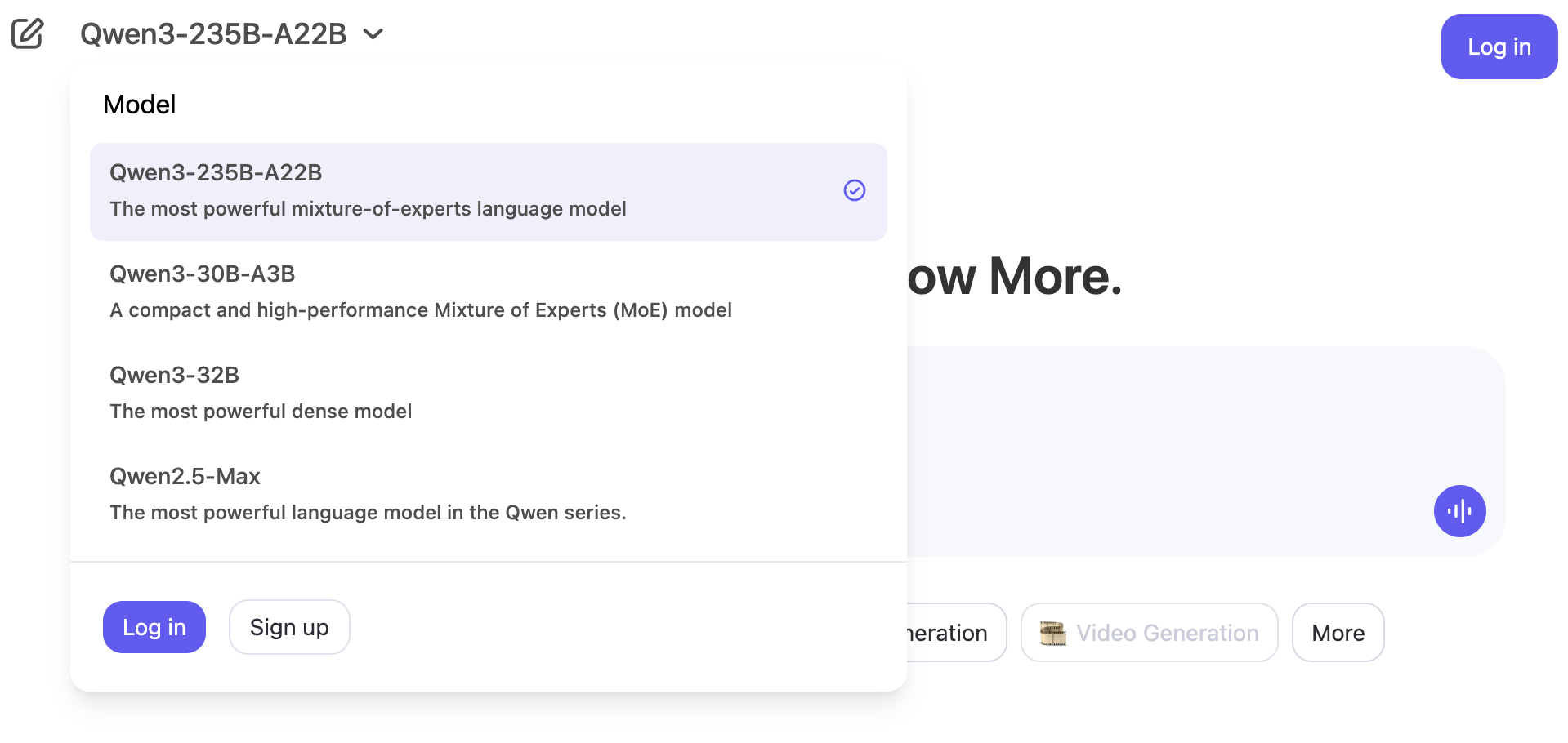 ChatGPTのような見慣れたチャットUIインターフェースで、Qwen3-32B、Qwen3-30B-A3B、Qwen3-235B-A22Bなどの上位モデルを利用することができる。