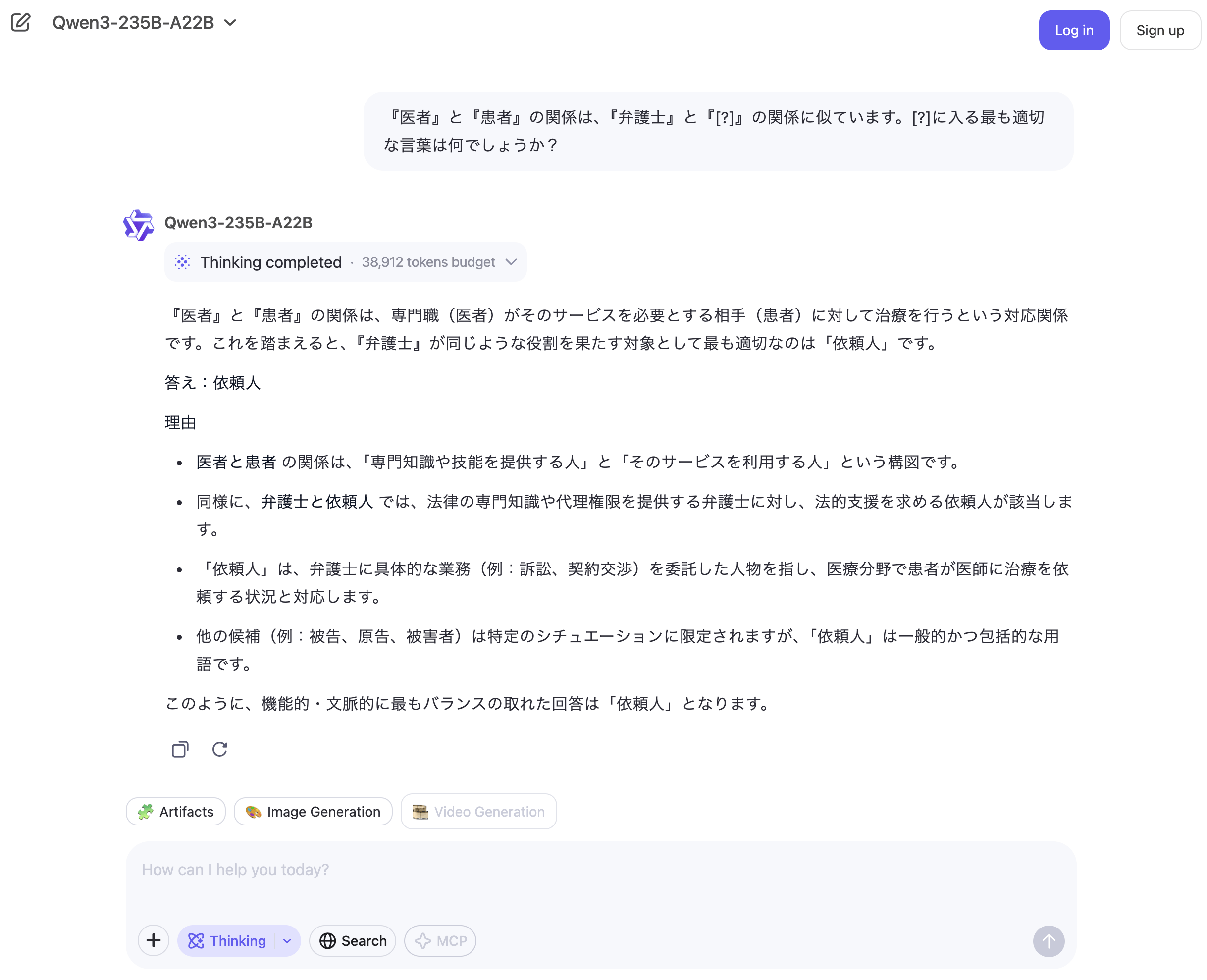筆者がQwen3-235B-A22Bで様々なプロンプトを試してみたところ、日本語能力は非常に高いと感じた。ほとんど違和感のない日本語で会話をすることができる。