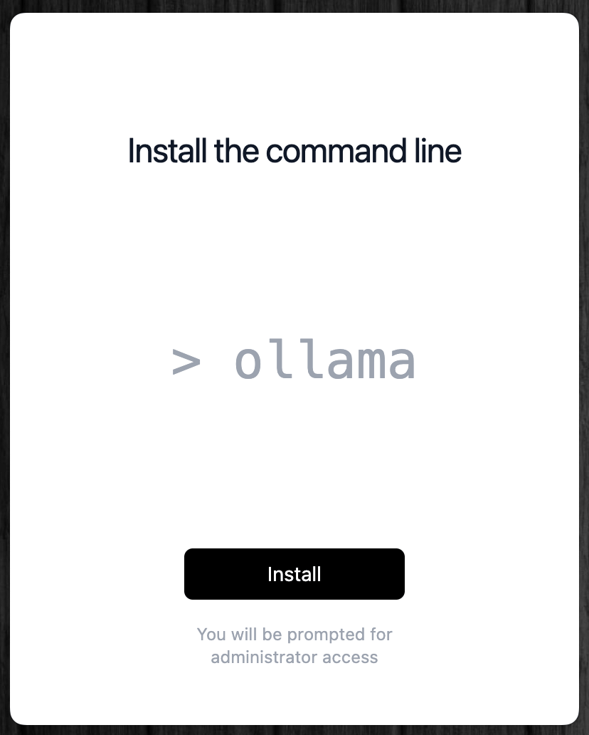 Ollamaを公式サイトからダウンロードして開いたら、コマンドラインツールのインストールを求められるので、画面の指示に従ってインストールする。