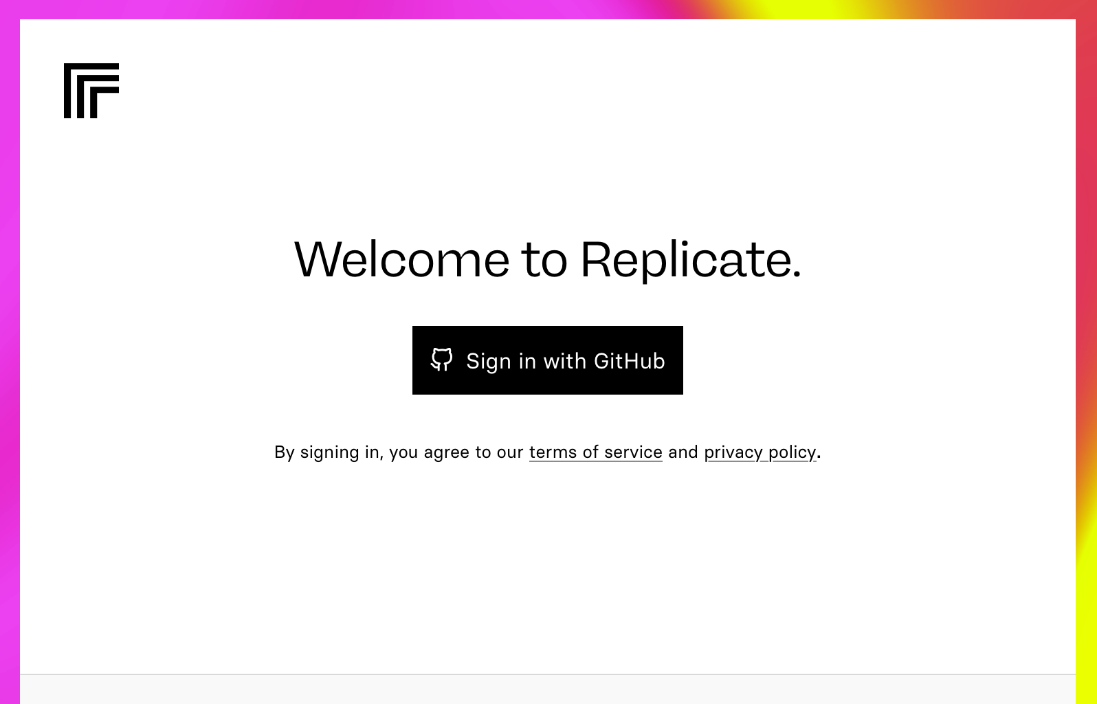 Githubのアカウントが準備できたら、ReplicateのWebサイトにアクセスして、右上の「Sing in」をクリックする。