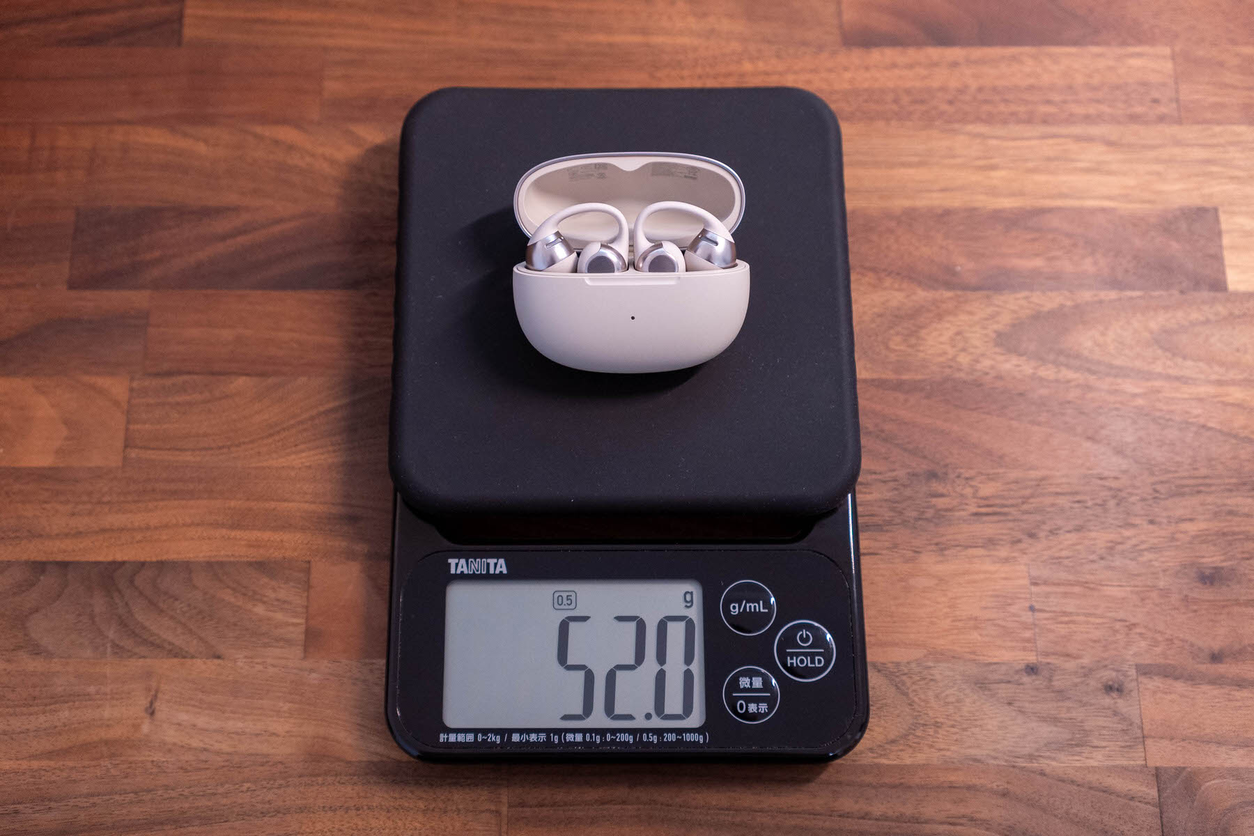 これだけのバッテリー持続時間を確保しながら、ケースと本体を合わせて50g程度に留まる。