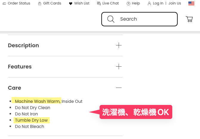 ソックスの商品概要欄で乾燥機OKかを確認(基本全部OKっぽい)