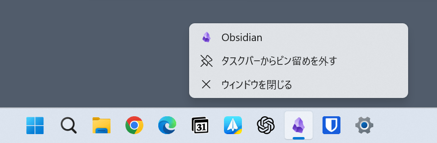 - タスクバーの何もない場所で右クリックし、「タスクバーの設定」を選択