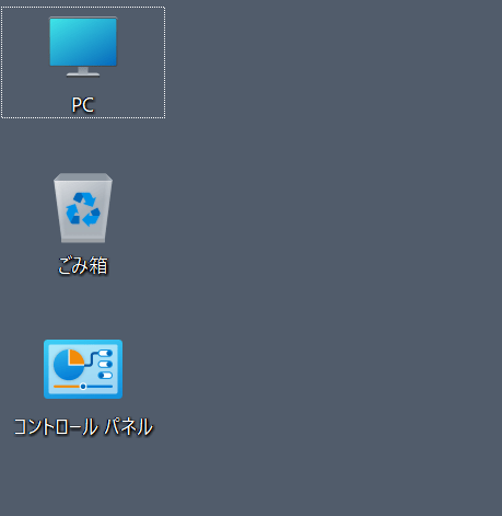 筆者は、デスクトップを常にクリーンにしておきたいため、「ごみ箱」以外のアイコンを表示しないようにしてある。