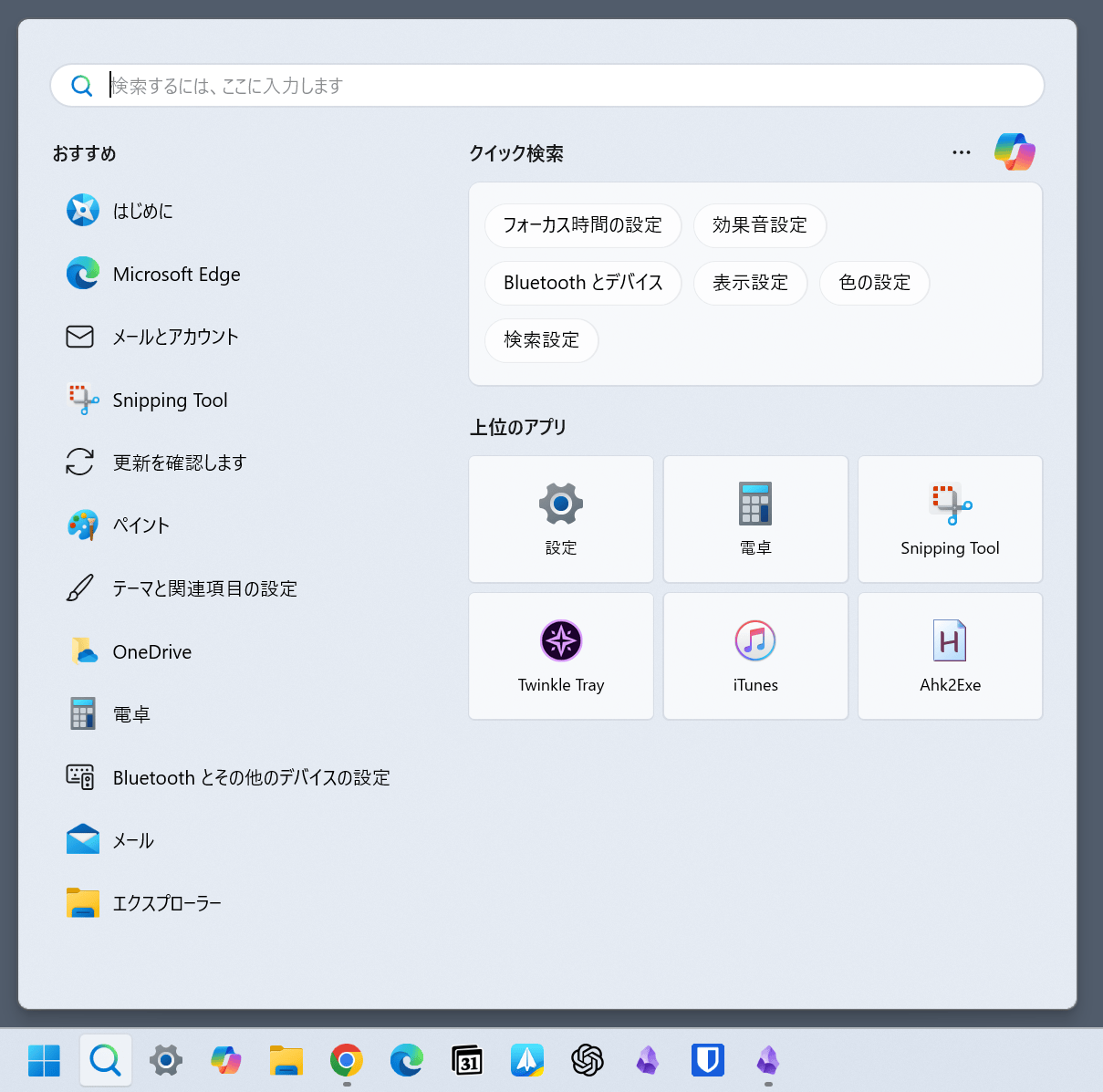 アプリの名前を打ち込むと、候補のアプリが表示され、Enterキーで瞬時にアプリを起動できる。