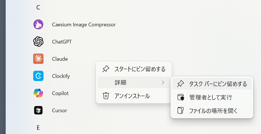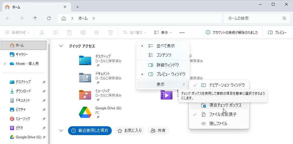 - ファイルエクスプローラーを開く