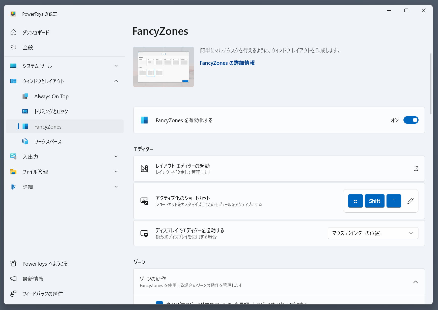 「FancyZones」でウィンドウの配置&リサイズを自由自在に変更