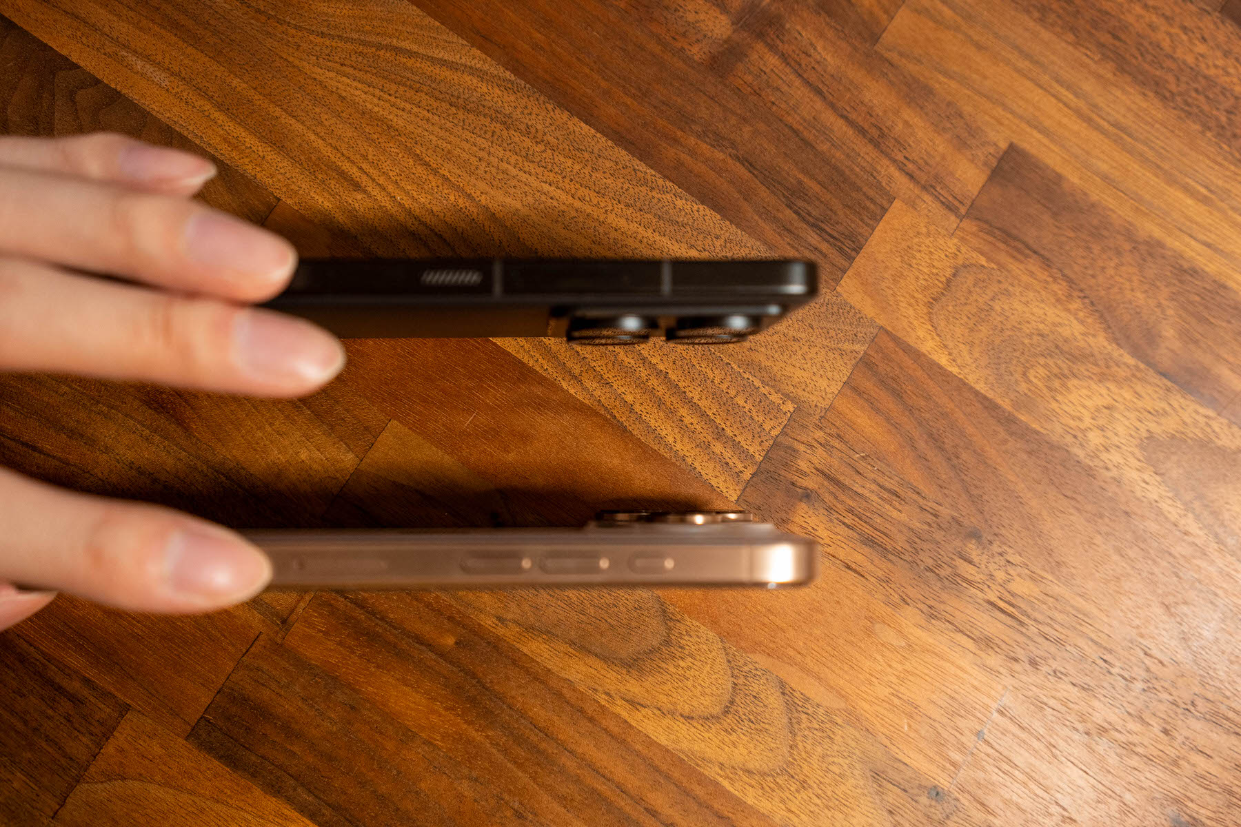 カメラの出っ張り具合は、iPhone 16 Proとあまり変わらない。使用する上で特に支障はないものの、机の上に背面を下にしておいて、引き摺ったりするのはかなり躊躇われる。