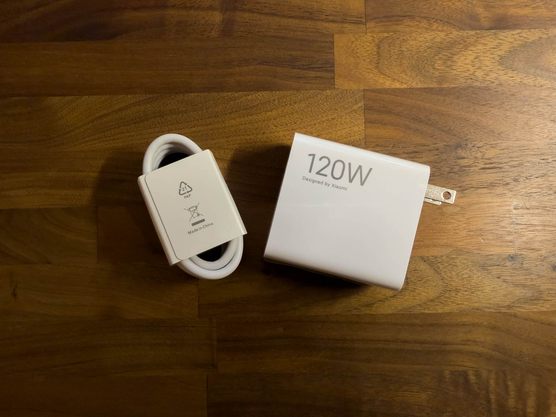 最近は、Xiaomi 14T Proや、Poco F6 Proなど、Xiaomiのミドルレンジ以上のスマホには、超高速な120Wの充電器が同梱されている。