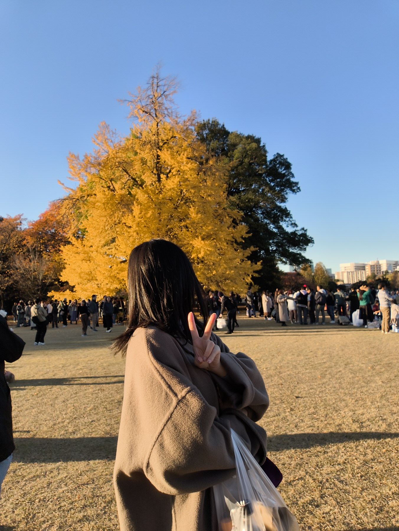 新宿御苑で人物をフロントカメラで撮影してみたのが以下の写真。美顔エフェクトなど、セルフィー用の各種フィルタをすべて切った状態で撮影した。