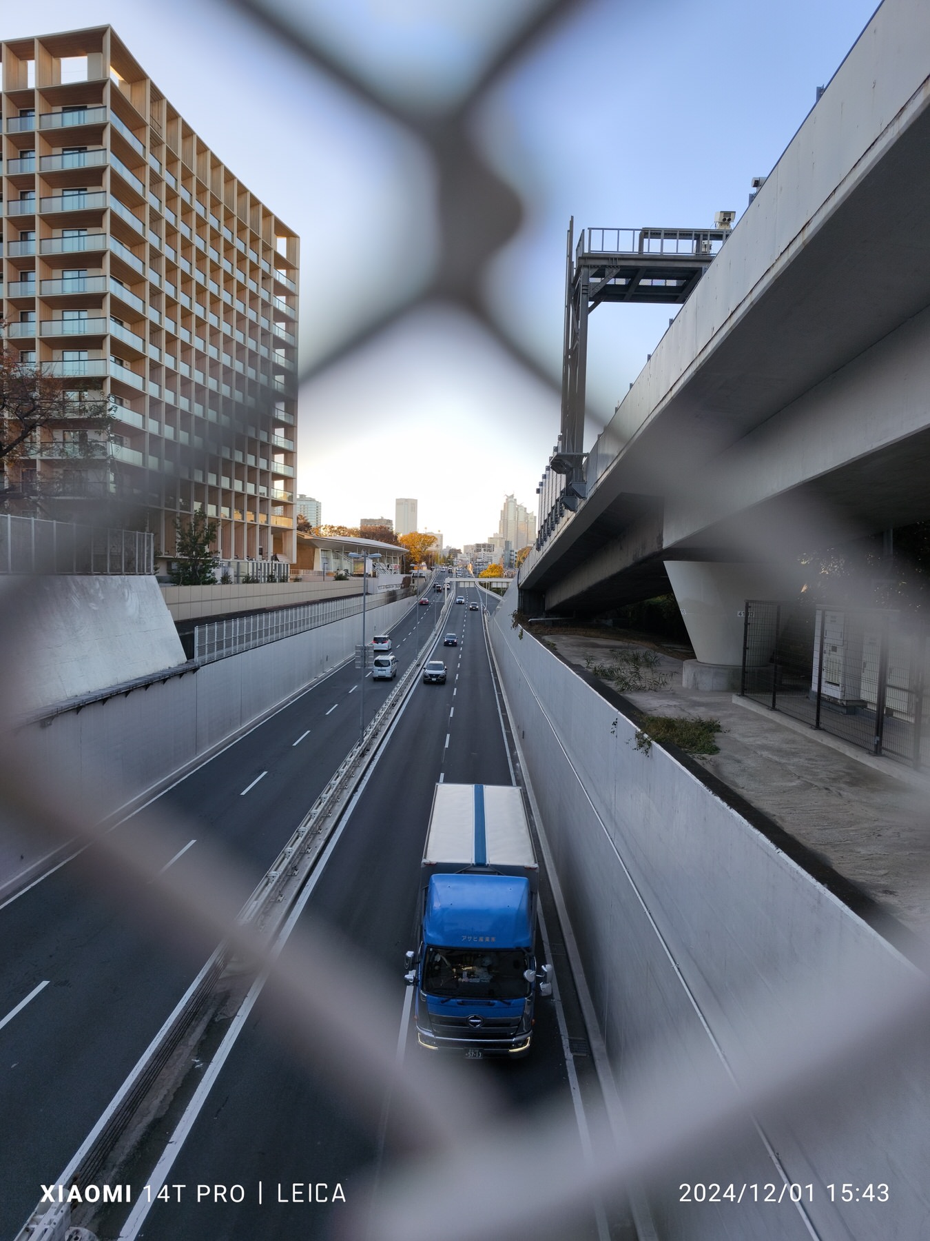 一眼レフ風の「ボケ」も、かなり自然に表現できる。金網越しに撮影した高速道路も、以下の様にうまくボケてくれた。