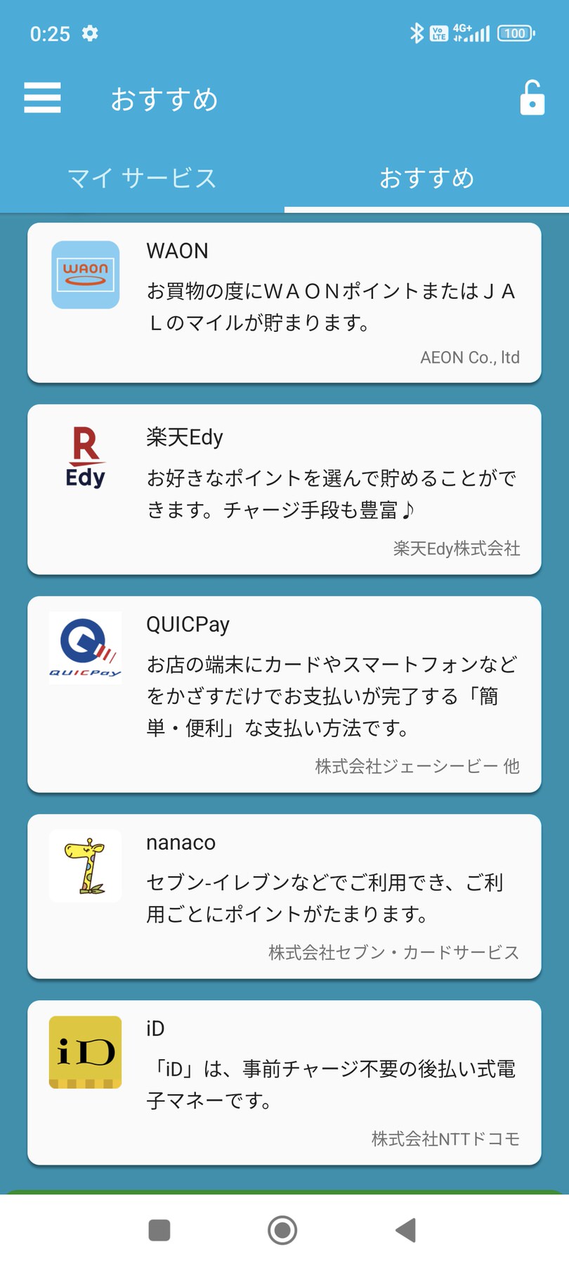 おサイフケータイアプリで、それぞれのカードを追加することができる。