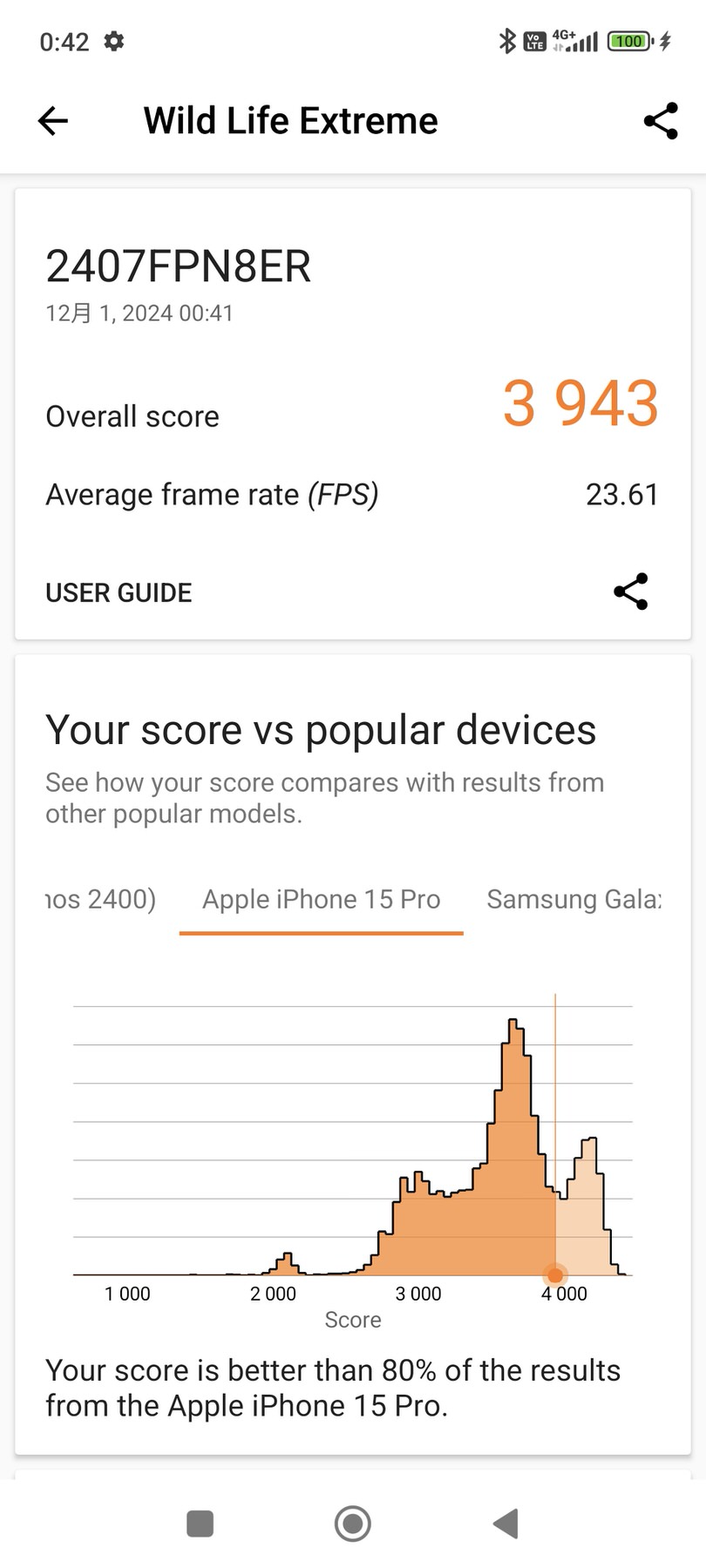 結果は以下の通りで、iPhone 15 Proに匹敵するか上回るほどのスコアを叩き出した。